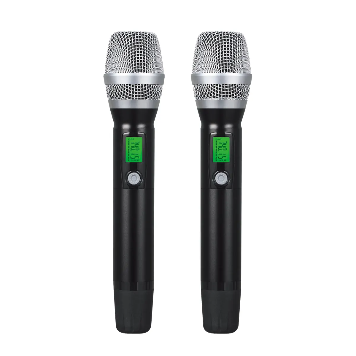 - Includes 2 Handheld Microphones: Sleek black design with built-in transmitters.