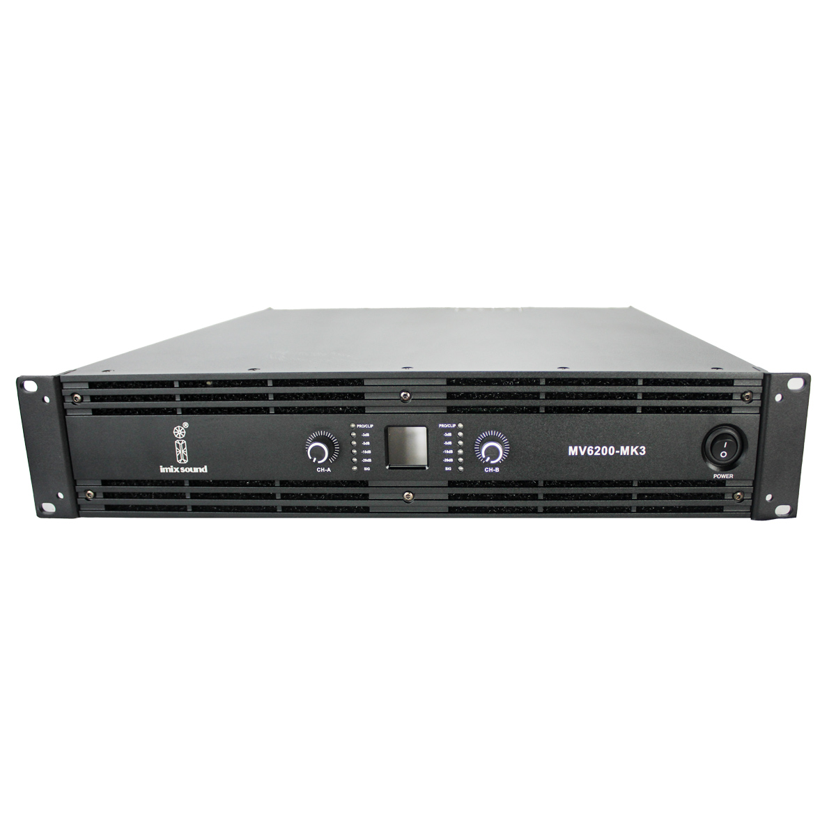 The Imix MV6200-MK3 Power Amplifier is a high-performance, efficient audio amplifier designed for both professional audio applications. Featuring advanced Class D technology, the amplifier offers high efficiency, minimal heat generation, and a lightweight design. Its low Total Harmonic Distortion (THD) guarantees clean, distortion-free sound across a broad frequency range, while built-in protection circuitry safeguards against overvoltage, short circuits, and thermal overload.