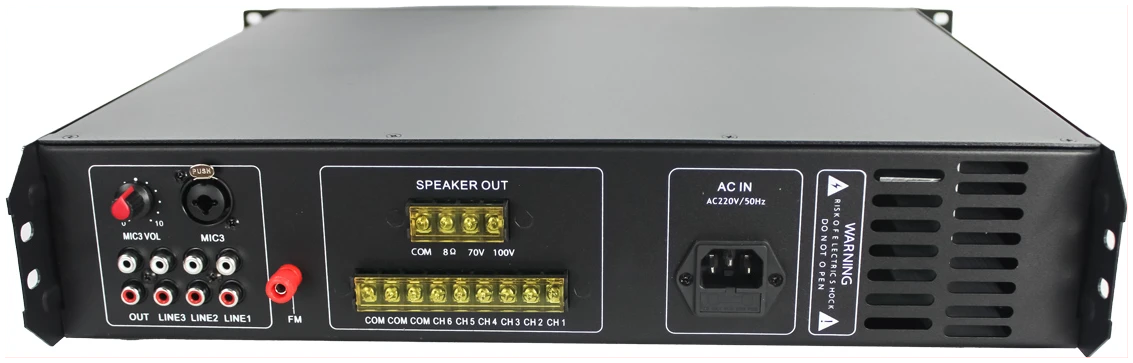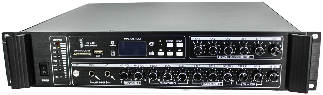 The Imix PD-350 Public Address Amplifier is a high-quality audio solution tailored for large venues and commercial spaces. With an impressive 350-watt output, it provides clear, uniform sound coverage across auditoriums, conference rooms, and outdoor areas, making it perfect for public speaking events, and various other occasions. Featuring multiple input channels, it seamlessly connects to microphones, audio devices, FM radio, USB and SD Mp3 playback. The amplifier is also equipped with built-in tone controls, volume adjustments, and protective circuits to prevent overheating and overloads, ensuring dependable, long-lasting performance. Its sturdy construction and efficient cooling system make the Imix PD-350 a reliable option for installations that demand consistent, top-notch audio quality.