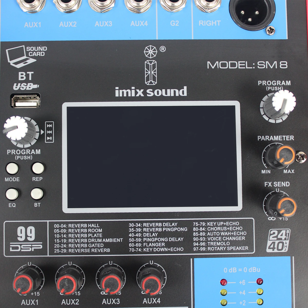 The Imix Sound SM20 Mixing Console is a high-quality and versatile audio mixer, ideal for professional and semi-professional use. It offers powerful features for superior sound control, making it perfect for studio recordings, live performances, and DJ setups.