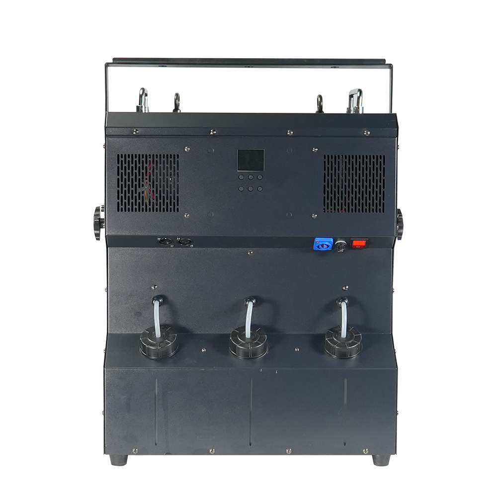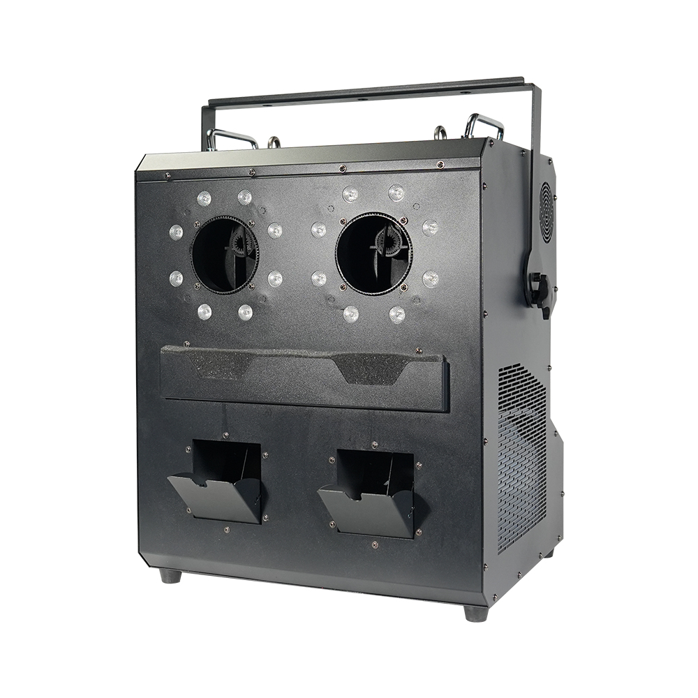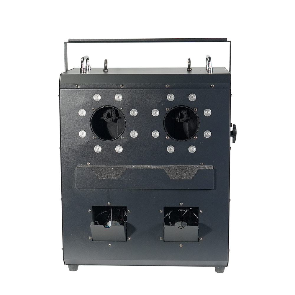 Double-Headed Design: Two jet bubble wheels ensure a high volume of bubbles for maximum coverage. Integrated Fans: Enhances bubble projection and reduces residual smoke for a cleaner effect. Color Screen Display: User-friendly interface with optional Chinese and English settings for easy operation. Adjustable Effects: Offers smoke bubble, bubble, shock fog, and three optional modes for customizable displays. Efficient Heating System: Produces uniform and pure mist, reducing excess smoke formation. LED Light Integration: Equipped with RGB LED panels for vibrant lighting effects. Large Capacity: Includes a 2.5-liter smoke oil barrel and two 2.5-liter bubble oil barrels for extended use. DMX Control: Features DMX-512 with 9 channels for precise control and synchronization. Portable and Durable: Lightweight at 18.7 kg with dimensions of 420x350x490 mm, ideal for easy setup and transport.