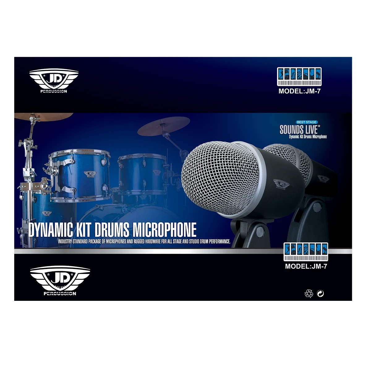 - Complete Drum Kit Microphone Set: The JD Percussion 7 Piece Drum Mic Set includes 7 microphones, providing all the essential microphones for a full drum kit setup. It includes specialized mics for the snare, toms, kick drum, overheads, and more, ensuring every part of the drum kit is covered with clarity and precision.