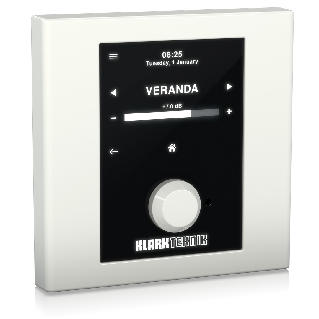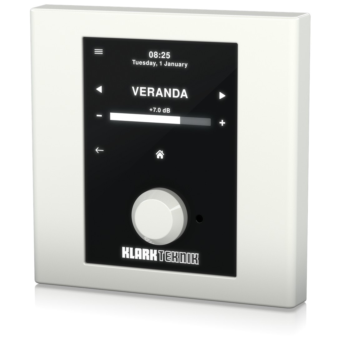 The Klerk Teknik DM-TCE-EU Touch Screen Ethernet Wall Controller is a highly advanced solution for controlling audio systems. It features a 2.3-inch color touch screen that allows easy navigation across multiple pages and controls. Users can adjust settings effortlessly, making it ideal for complex audio setups.