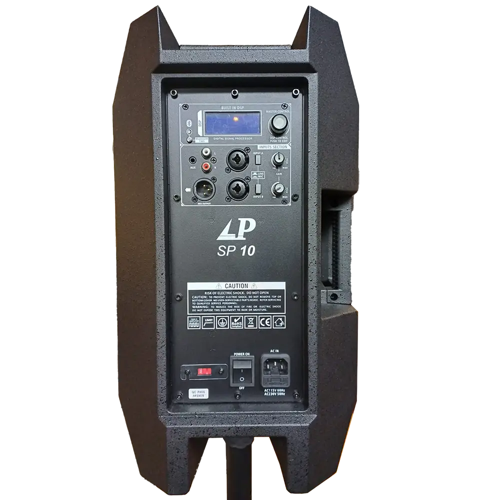 The SP10A comes with Digital Signal Processing (DSP) technology and Bluetooth connectivity, offering advanced functionalities for a modern audio setup.