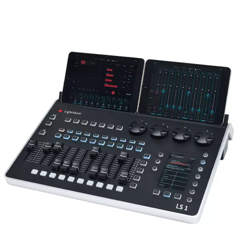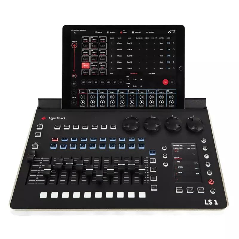 The awards-winner console that has changed Lighting Control concept. LIGHTSHARK LS1 is a lighting console with all the features of the software in a compact, ergonomic and intuitive control surface with 10 playbacks faders and 4 round encoders. Design, program and perform your lighting shows with a complete console in a compact format compatible with airline hand luggage. A control surface with all the power of the LIGHTSHARK engine in compact hardware with the main functions of the most powerful lighting desks. The LS1 Console comes with A full set of hardware connections suitable for DMX512, Ethernet, USB Data & Power and WiFi.