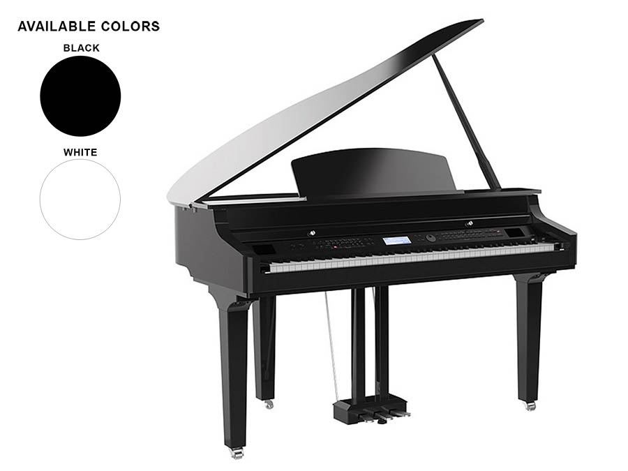digital baby grand piano, 88 keys graded hammer action, triple sensor (K8), 2 x 100 watt, blackThe Medeli GRAND510, a fantastic piano with the appearance of a real grand piano. However, it is not only the appearance that impresses. This grand piano is equipped with the high-quality K8 keyboard from Medeli and therefore has the touch and feel of a real grand piano. Three sensors ensure that the touch (and also the release) of the key is correctly registered and displayed. Due to the 2 x 60 watt amplifier and speakers, this piano has a rich and deep sound.