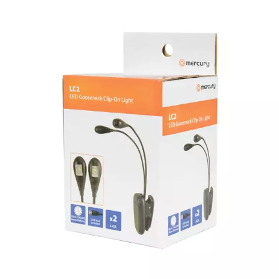 Clip-on lights featuring two independent goosenecks and individual switches. Ideal for a wide range of uses including live performances, studio use, reading and crafts.