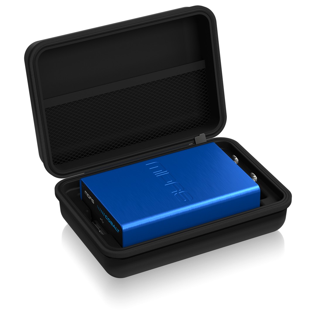 The blue brushed aluminium chassis gives the unit a sleek look and rugged touring durability. Its compact footprint makes transport easy, and a custom carry case protects it during travel. This makes COBALT ideal for remote recording, fly dates, or mobile rigs.