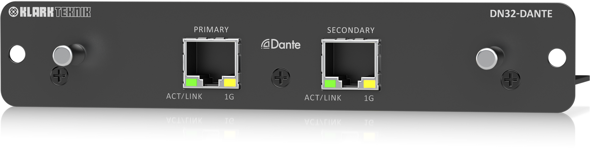- Primary and secondary Ethernet interfaces for dual-redundant Dante networking