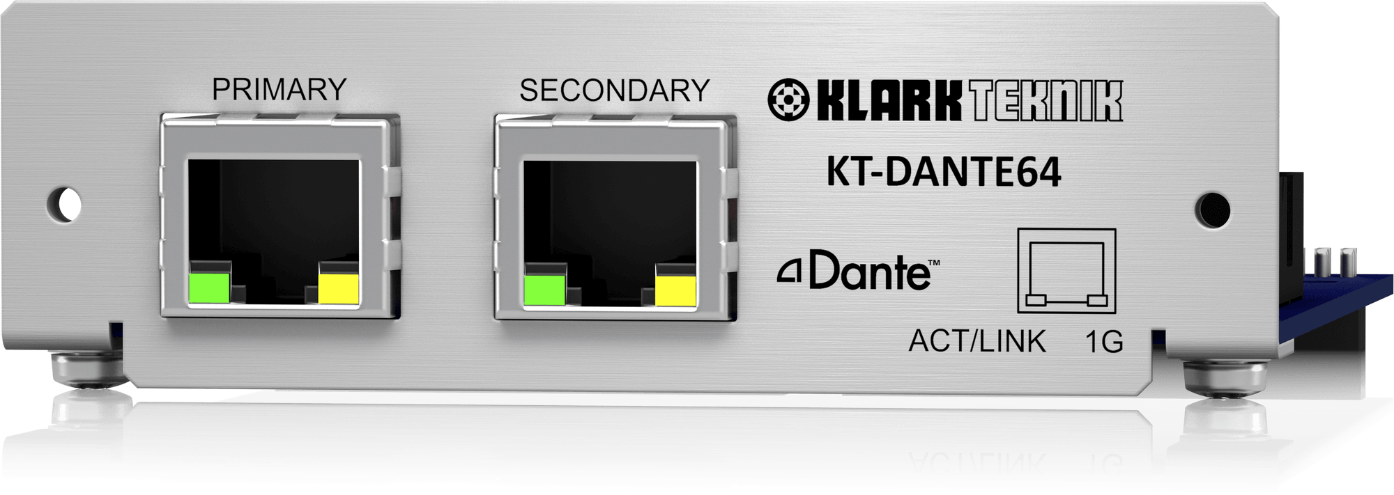 - Primary and secondary Ethernet interfaces for dual-redundant Dante networking