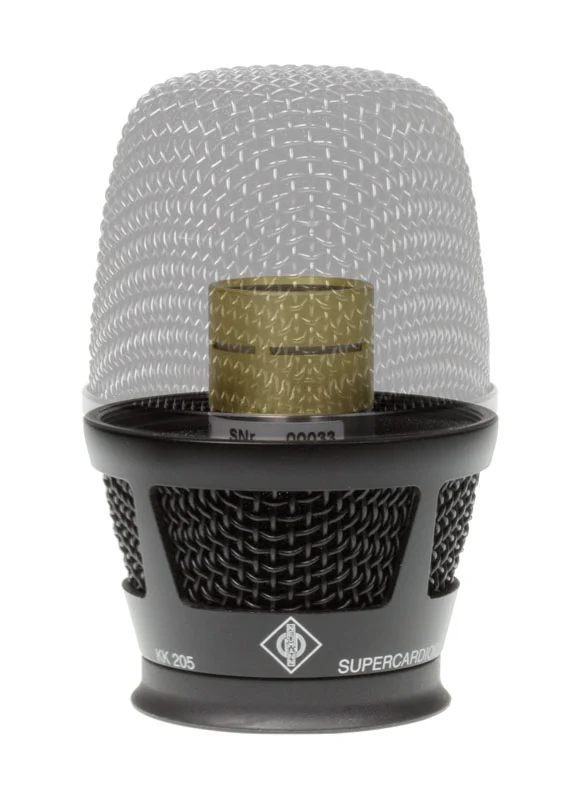 The Neumann KK 205 BK is a supercardioid condenser microphone capsule engineered to bring Neumann’s acclaimed studio sound to the stage through Sennheiser wireless transmitters. Based on the renowned Neumann KMS 105 wired vocal microphone, the KK 205 BK delivers open, detailed, and natural sound reproduction — optimized for live vocal performance, touring, and broadcast.