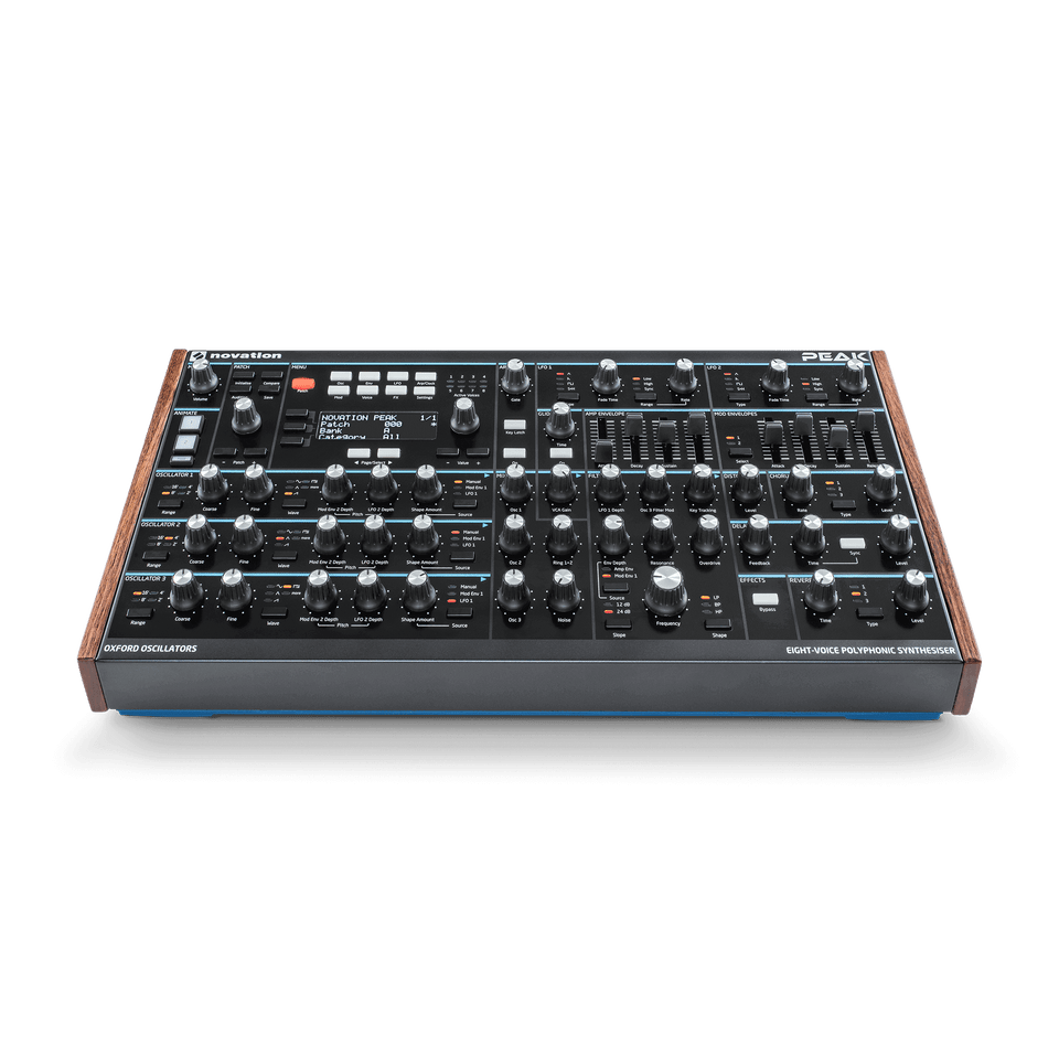 The Novation Peak is an award-winning 8-voice polyphonic synthesizer that fuses the warmth of analog circuitry with the precision of digital control. Built around Novation’s Oxford Oscillator technology, Peak delivers an incredibly rich and expressive tone palette for sound designers, producers, and live performers — all within a compact desktop module.