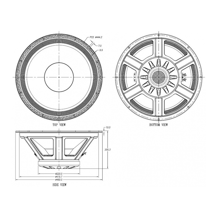 The E18-400S NEW employs a medium format 3 inch (76.2mm) diameter voice coil that provides an AES rated 400 watts of continuous power handling and a full 1600 watts of peak rated power handling when sufficient amplifier headroom is available. The E18-400S NEW utilizes P Audio\’s under damper venting technology to improve transducer air flow and reduce turbulence under the damper and around the voice coil.