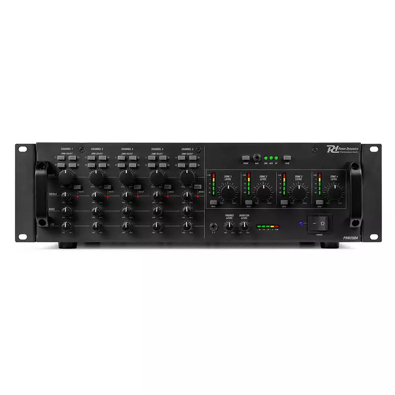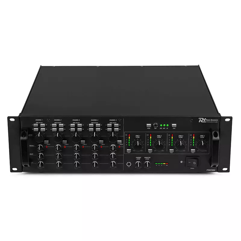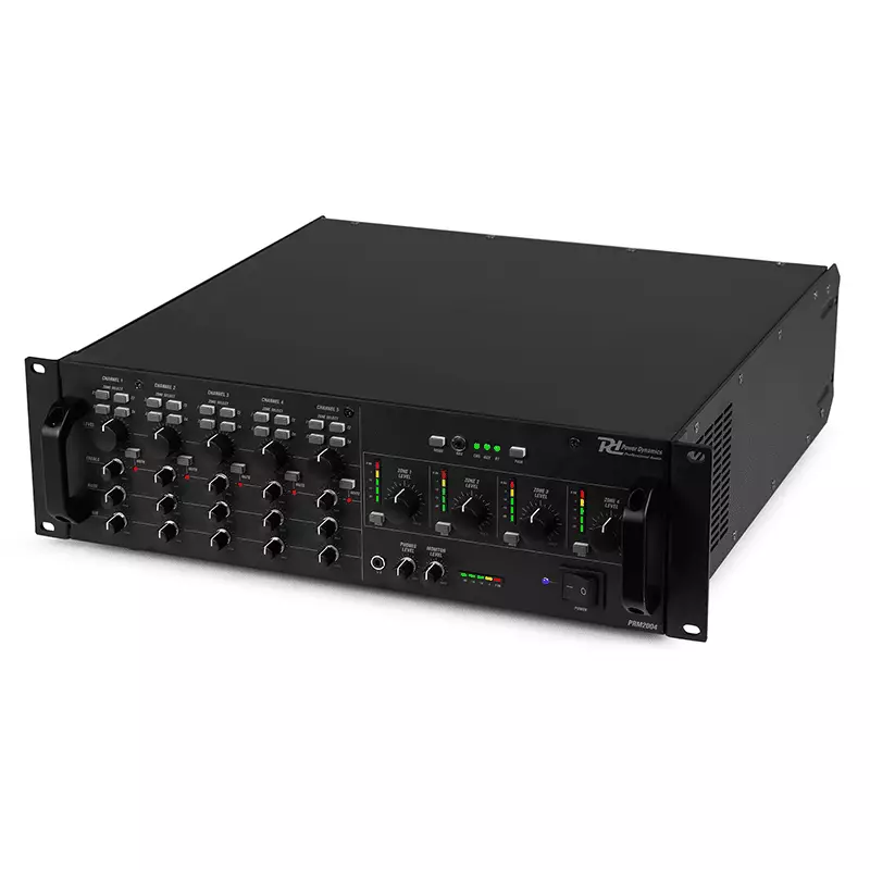 The PAM2004 comes equipped with a powerful built-in amplifier, providing up to 200 watts of power to each of the 4 output zones. Additionally, the PAM2004 features a range of advanced features to help you fine-tune your sound, including bass and treble controls, a built-in limiter to prevent distortion, and a priority function that mutes other channels when a higher priority channel is activated.