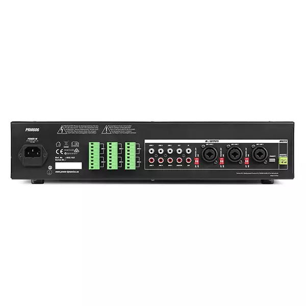 The PRM606 is a rack-mountable amplifier that can either be used as 100V amplifier or as a standard low-impedance amplifier. This 6 zone amplifier is designed for multi-room systems requiring different audio sources. It’s equipped with BT receiver and USB/SD ports for MP3 playback including a bright LCD display with ID3 Tag. The PRM606 is provided with switchable XLR inputs with 24V Phantom Power, especially for paging and condenser microphones. Especially designed for applications such as paging, announcements, intercommunications, background music, broadcasting in industrial plants etc.