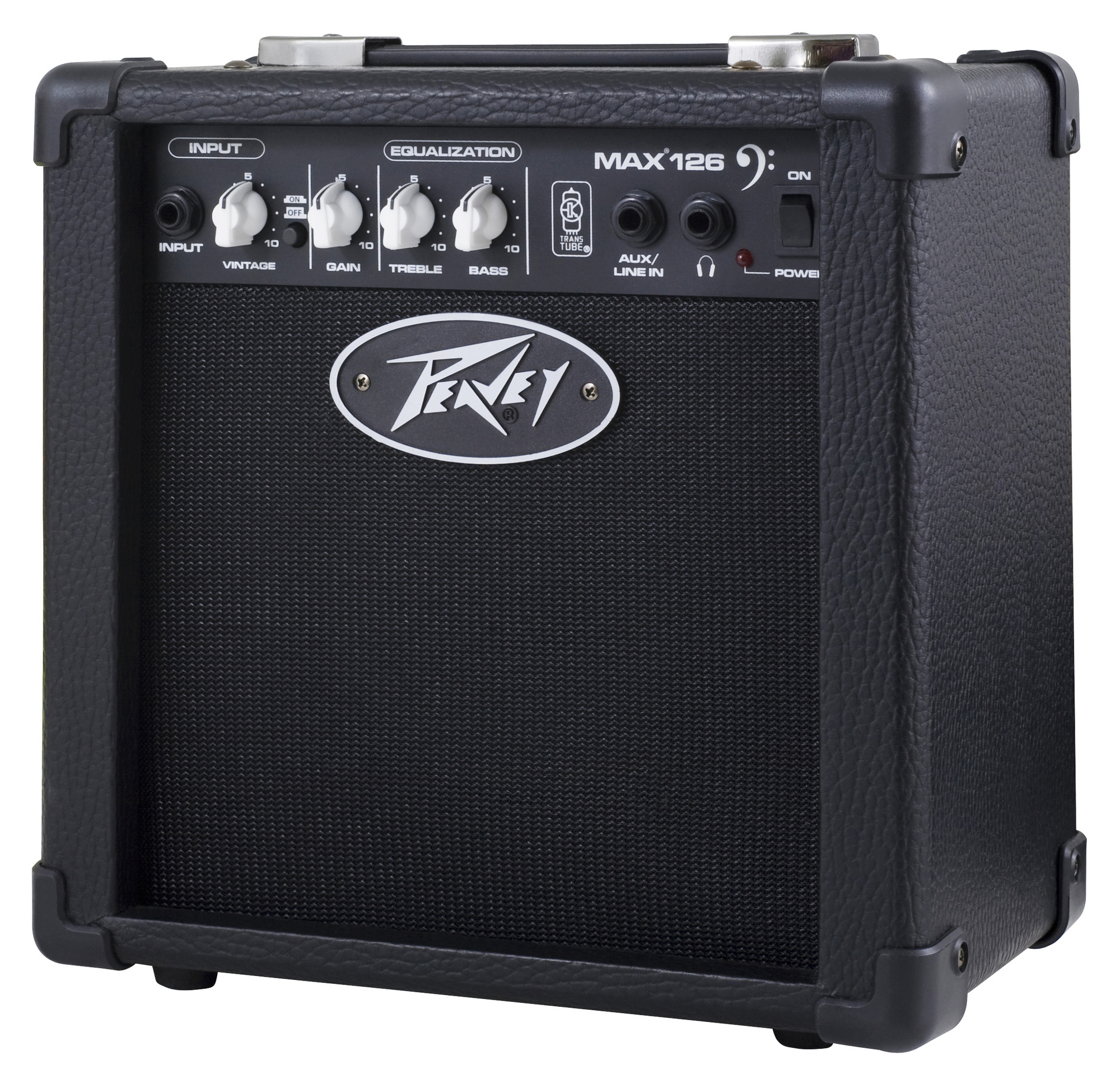 The MAX 126 bass combo amp is a 10 watt bass practice amp loaded with features that make it ideal for small rehearsals, including TransTube gain boost, multi-band EQ, Peavey exclusive DDT compression, headphone output and auxiliary input.
