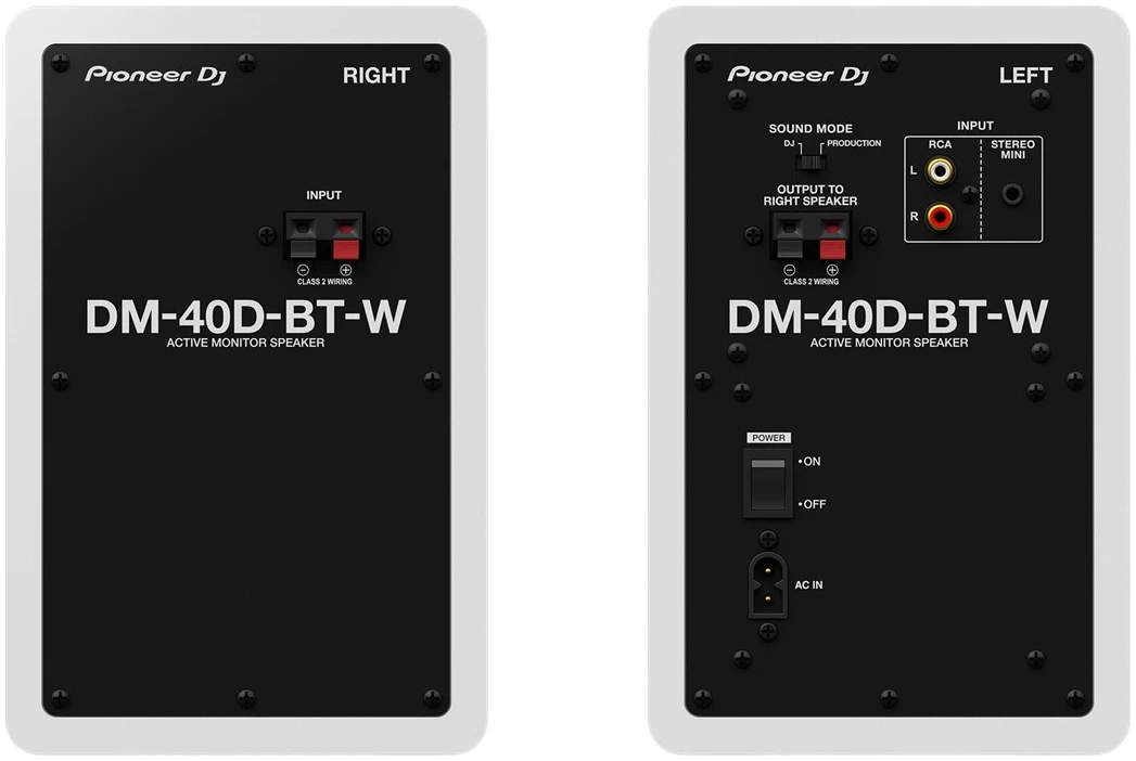 In conclusion, the Pioneer DJ DM-40D-BT-W 4” White Desktop Monitors-Bluetooth(Pair) are a versatile and compact solution for high-quality audio in any setting. Their advanced features, including a Class D amplifier and 4-inch fiberglass woofer, deliver punchy, balanced bass and crisp highs. The dual-mode functionality allows seamless switching between DJ and Production modes, automatically optimizing audio performance. Bluetooth® connectivity offers effortless wireless streaming, while DECO convex diffusers and grooved ducts enhance the overall listening experience. With easy-to-access controls and multiple input options, these monitors cater to a wide range of setups. Whether you’re DJing or producing music, the DM-40D-BT-W ensures clear, immersive sound quality every time.
