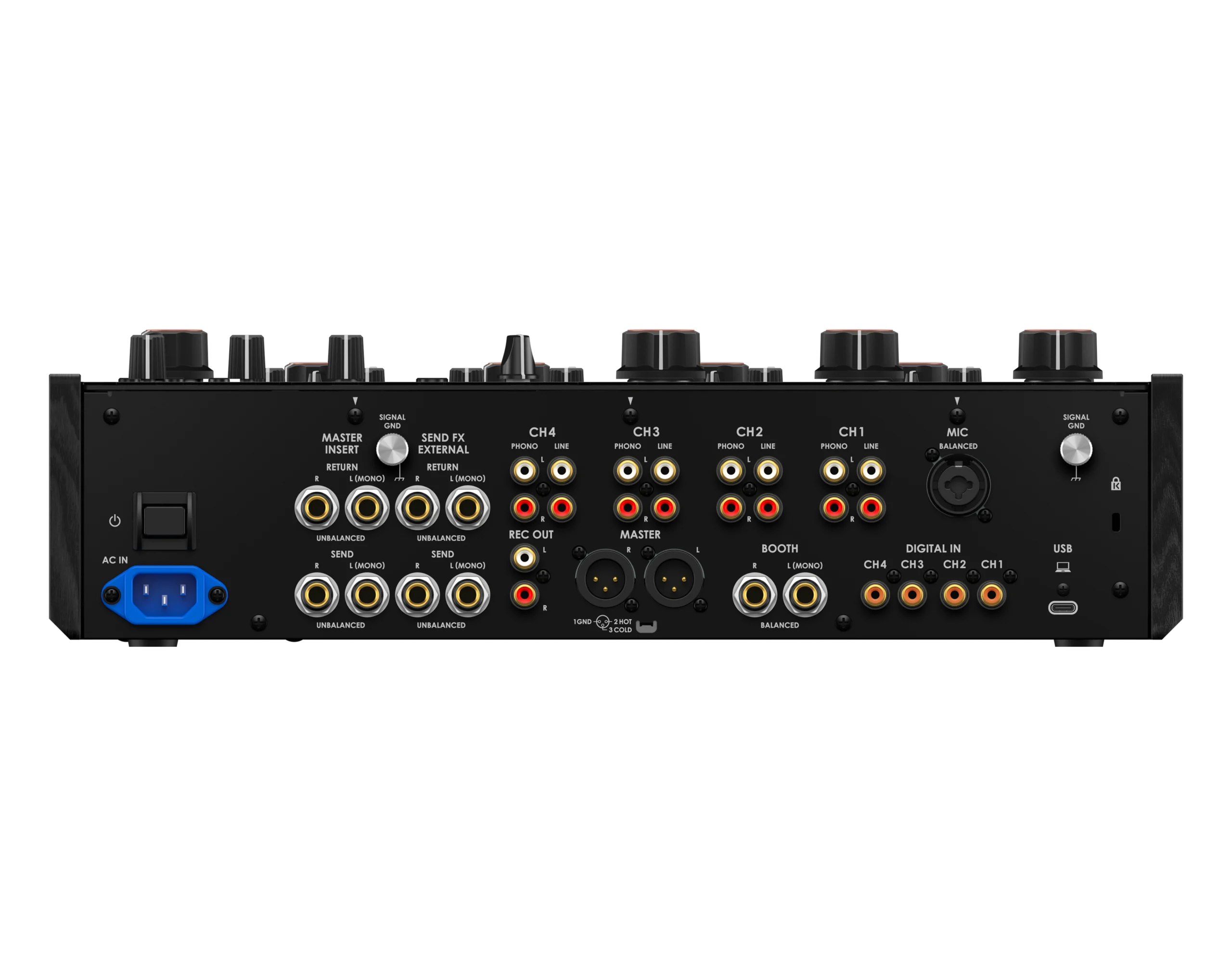 - Outputs: Master x 1 (XLR), Booth x 1 (1/4″ TRS), Rec x 1 (RCA), Phones x 2 (1/4″ stereo, 3.5 mm)