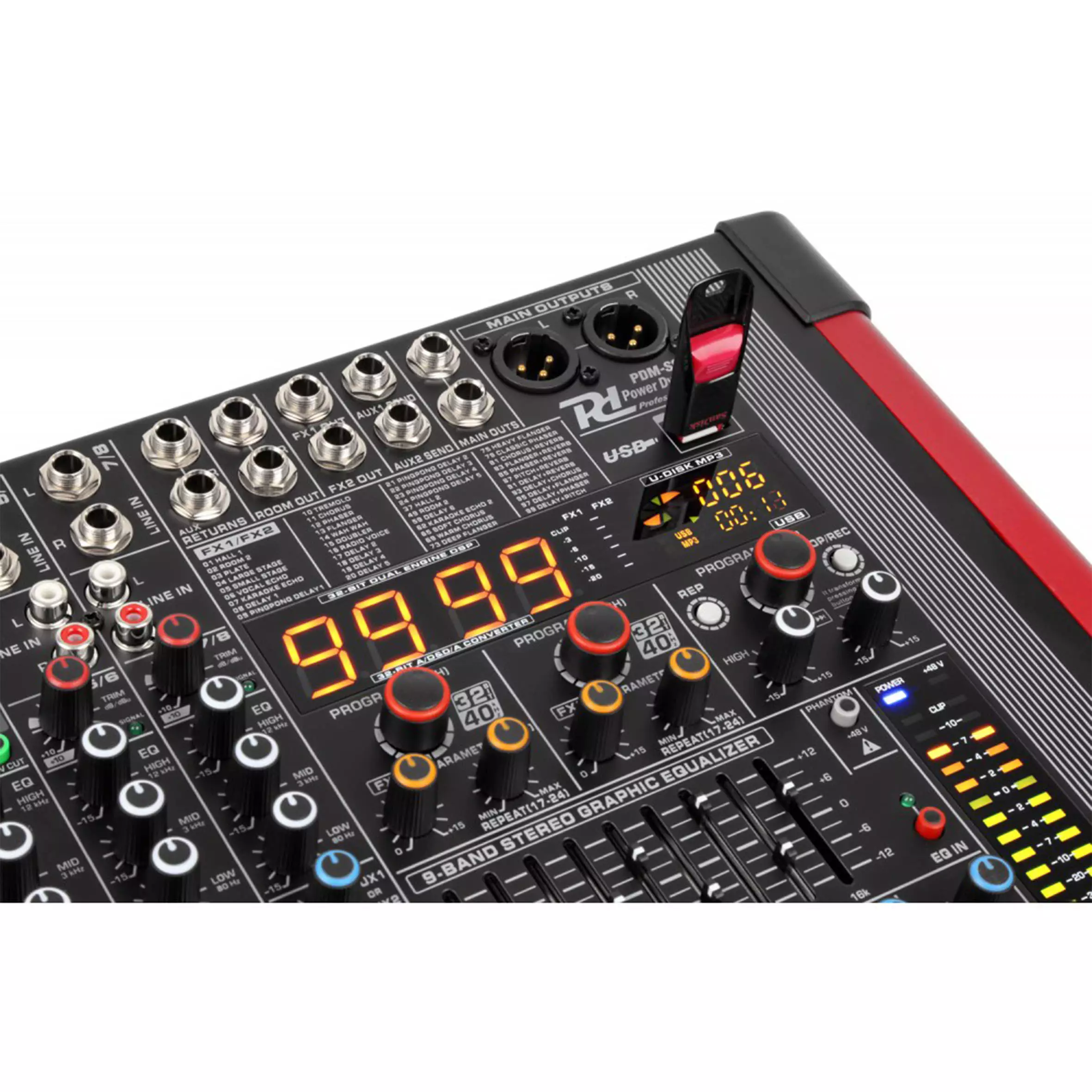 - Stereo balanced main outputs (XLR + 6.3mm Jack)