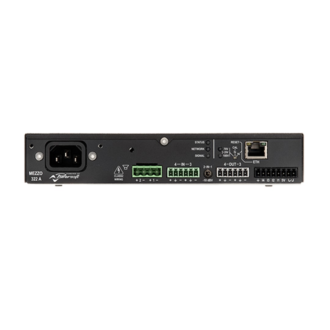 The Powersoft MEZZO 322A 320W/2-channel Amplifier redefines audio performance with its impressive 320W output across two channels. This amplifier delivers renowned reliability, build quality, and acoustic integrity, all in a remarkably small footprint. The compact design enhances flexibility, allowing easy installation in various settings, including tight spaces. Users can effortlessly mount the MEZZO 322A anywhere, thanks to the included mounting kit.