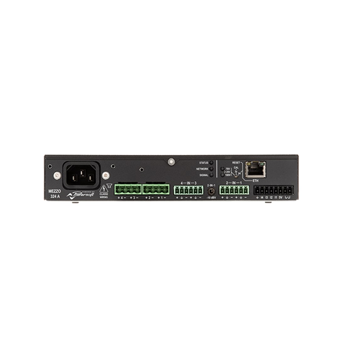 The MEZZO 324A is powerful and energy-efficient, reducing operational costs and minimizing its environmental impact. Overall, this amplifier combines cutting-edge technology with robust construction. It is an ideal choice for audio professionals seeking reliable and flexible amplification solutions.