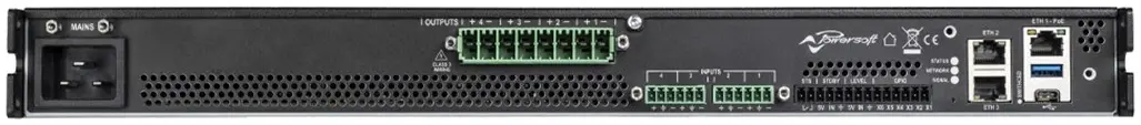 Powersoft 3rd Generation Amplification Technology: The UNICA 4L utilizes advanced processing and amplification architecture, ensuring maximum audio performance and reliability. This state-of-the-art technology allows for intricate processing capabilities, extensive networking options, and sophisticated monitoring functions. It effectively addresses the increasing complexity and demands of contemporary audio systems, delivering clear and powerful sound.