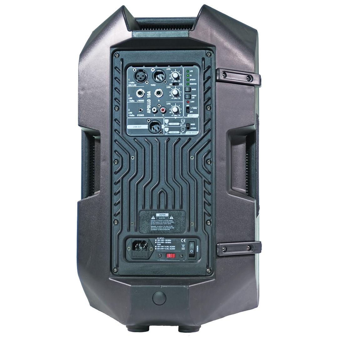 The Apollo 10PD includes a customizable DSP display that simplifies sound adjustments. Users can tailor their audio settings with just a few button presses, allowing quick adaptations to different venue acoustics. Additionally, the speaker features a robust polypropylene housing coated in anti-scratch black paint, along with a durable steel grille for added protection. This design makes it perfect for touring and challenging environments. Its portability is enhanced by two side handles and one top handle, facilitating hassle-free transportation. Furthermore, the flyable design and standard D35mm tripod/pole hole with dual tilt options provide flexibility for various staging setups, making the Apollo 10PD a versatile choice for any audio application.