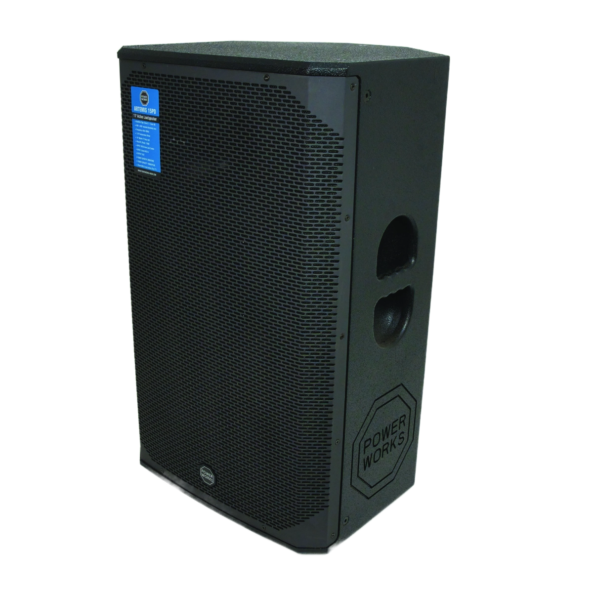 The PowerWorks ARTEMIS 15PD Active Speaker excels in the ARTEMIS Series, delivering high-definition audio for various applications. This model features a powerful 15-inch woofer and a 1.75-inch compression driver, ensuring clear sound across a frequency response from 43 Hz to 19 kHz. With a maximum SPL of 136 dB, it provides impressive volume and clarity. Its bi-amped design uses a 600W RMS Class-D amplifier for low frequencies and a 50W RMS Class-AB amplifier for highs, resulting in dynamic audio performance.