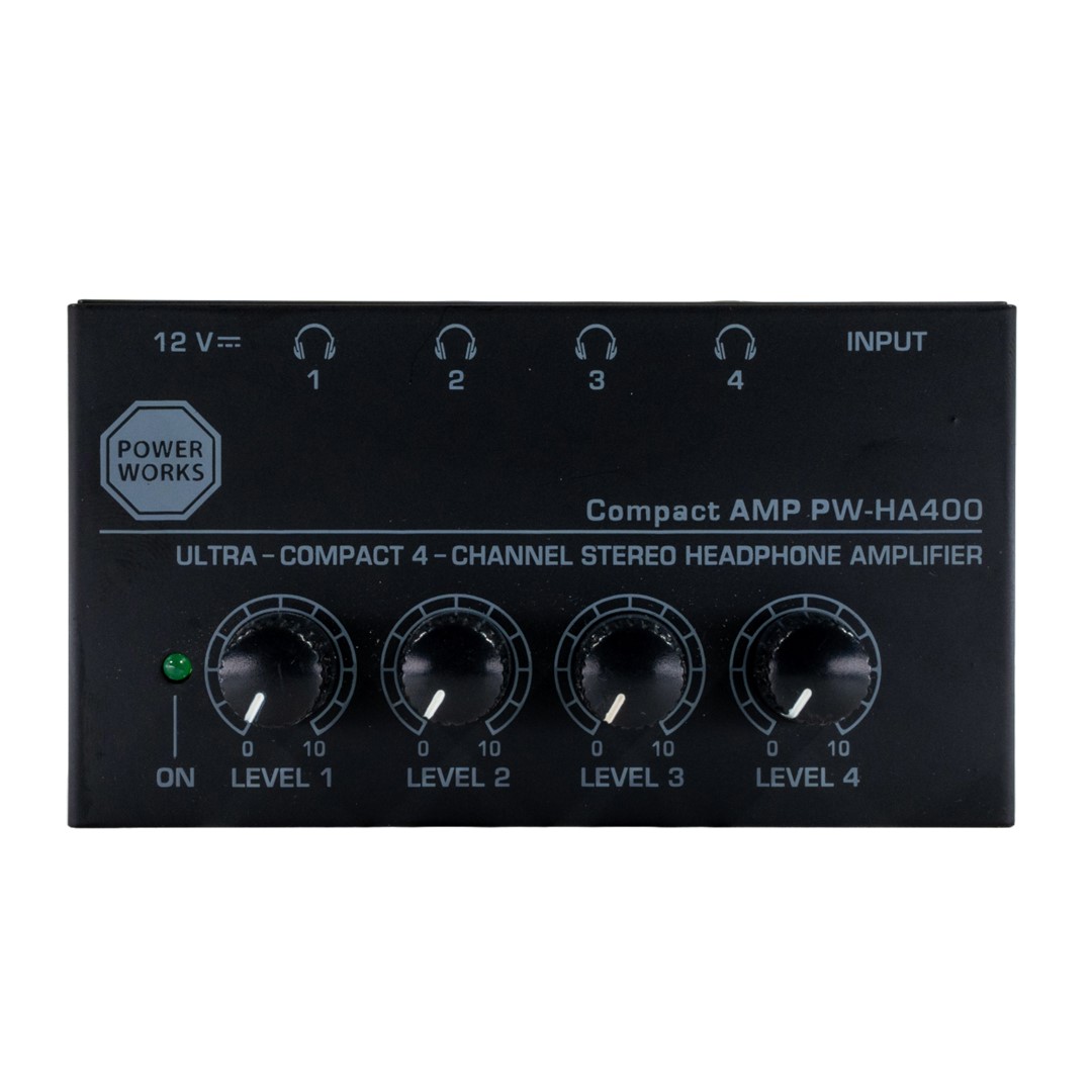 Whether you need to monitor multiple musicians, track a mix, or require a dependable headphone distribution system, the PowerWorks PW-HA400 delivers professional results. In summary, this headphone amplifier provides excellent performance and flexibility, making it an essential tool for audio professionals seeking a reliable solution for their headphone amplification needs.