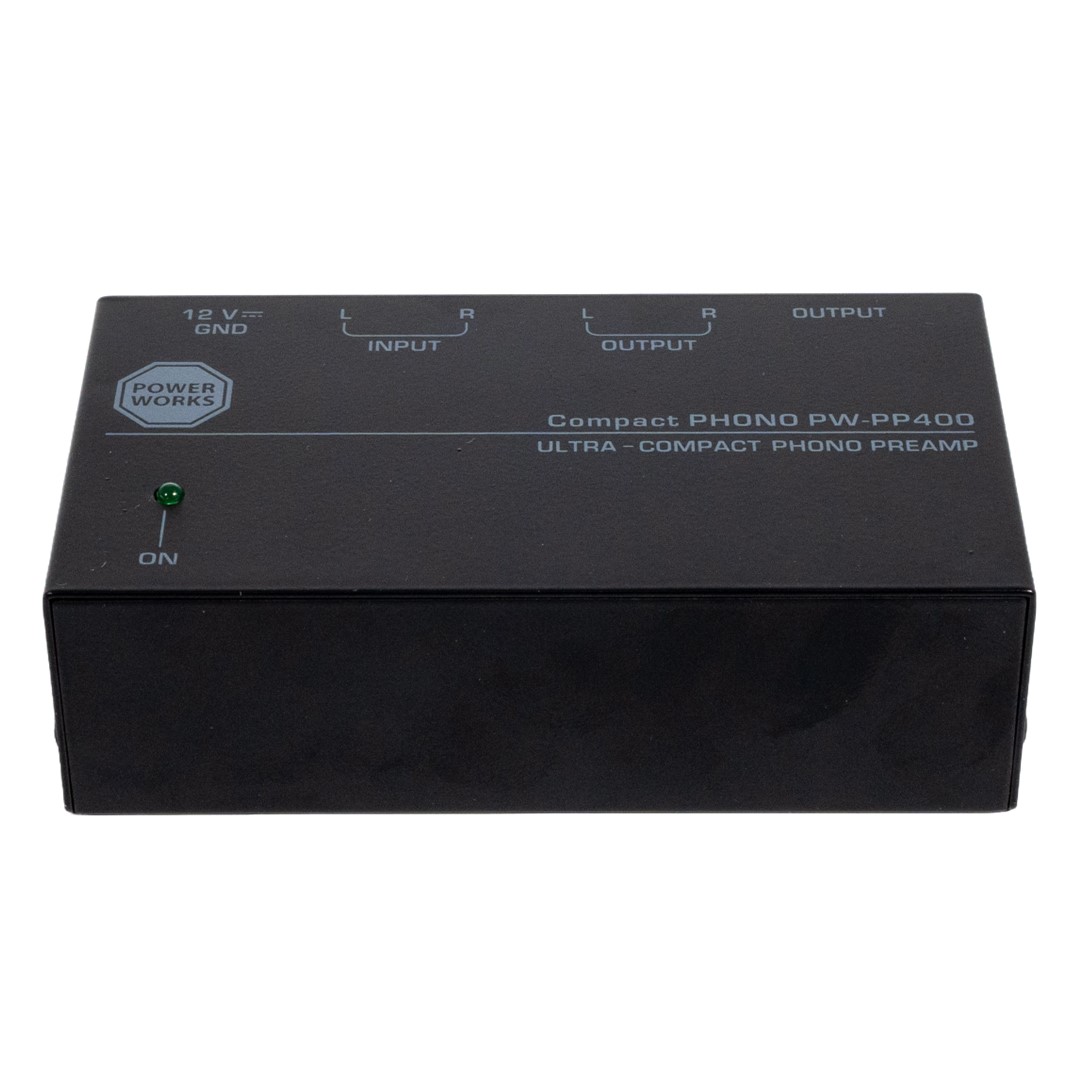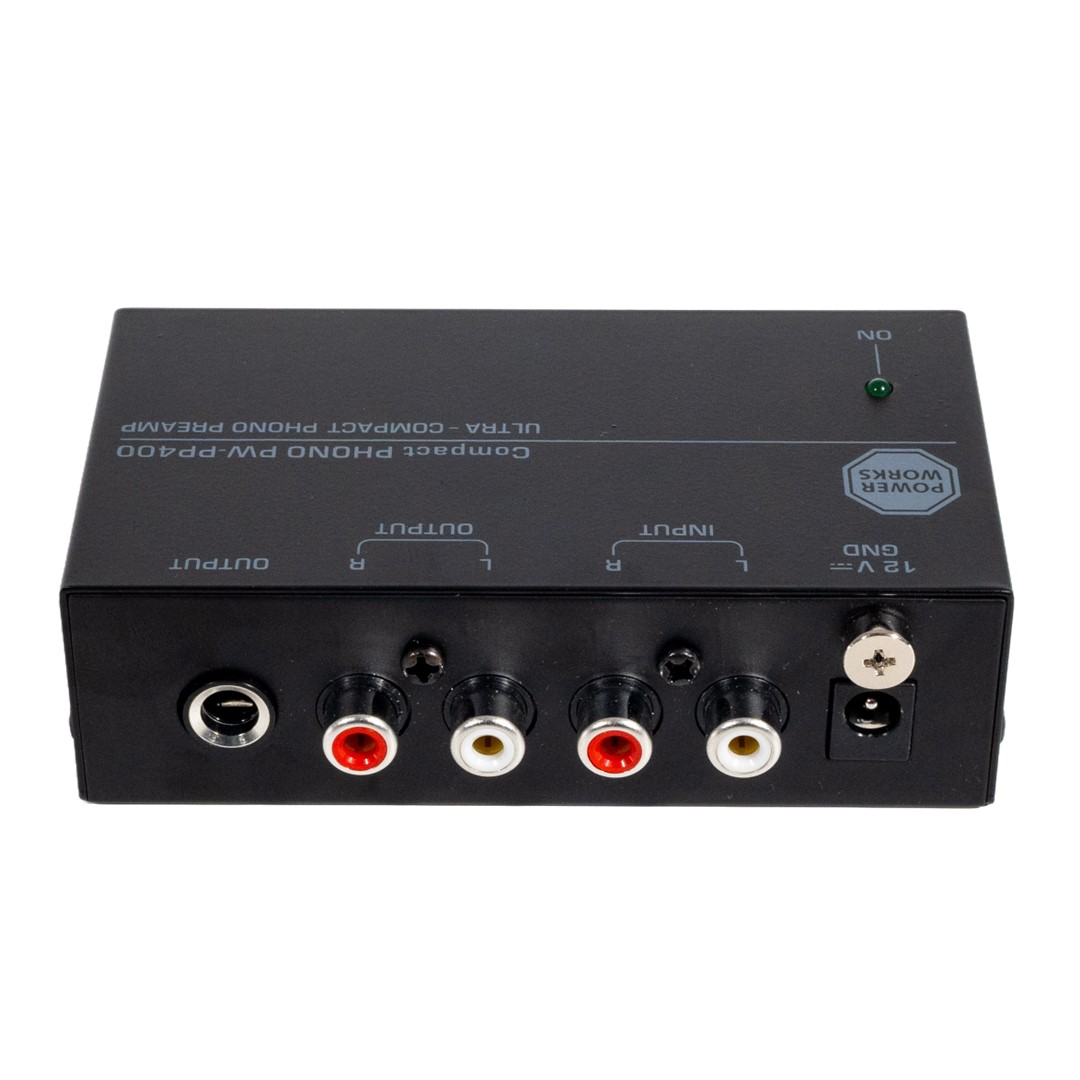 The PowerWorks PW-PP400 Phono Preamplifier is an ultra-compact phono preamp engineered to enhance the output of your record player. This essential device optimizes vinyl playback, ensuring crystal-clear sound from your collection. The PW-PP400 adheres to RIAA specifications, accurately amplifying and equalizing the low-level signal from your turntable. Consequently, it reproduces the audio exactly as intended by the artist, preserving the rich, warm characteristics of vinyl records.