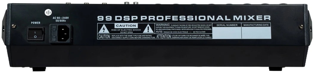 With 99 built-in DSP effects, this mixer adds depth and creativity to your audio, enhancing your mixes significantly. The 60mm stroke high-analysis faders ensure smooth transitions between audio sources, while the built-in digital display supports MP3 playback from USB drives and Bluetooth connectivity for wireless streaming. The 7-segment stereo graphic equalizer and high-precision three-color electric screen with dual 12-segment flow level display provide detailed visual feedback on signal levels. The LR channel monitor output ensures accurate monitoring during performances or recordings.