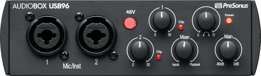 - Record guitar and vocals at the same time: Two crystal-clear, class-A mic preamps with +48v provide power for condenser mics