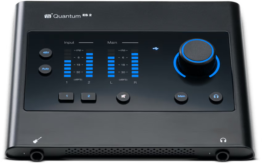 The culmination of 30 years of innovation, the Quantum ES 2 features two newly redesigned high-definition MAX-HD mic preamps with +75 dB of gain, making it ideally suited for today’s most popular microphones. Guitarists and bassists will love the instrument input, co-developed with Fender engineers. An Auto Gain button sets the perfect gain level for your microphones and instruments, while an illuminated push encoder provides flexible control over gain level and output volume. And bright and responsive LED metering provides easy visual feedback for your inputs and outputs, making it great for self-produced recording.
