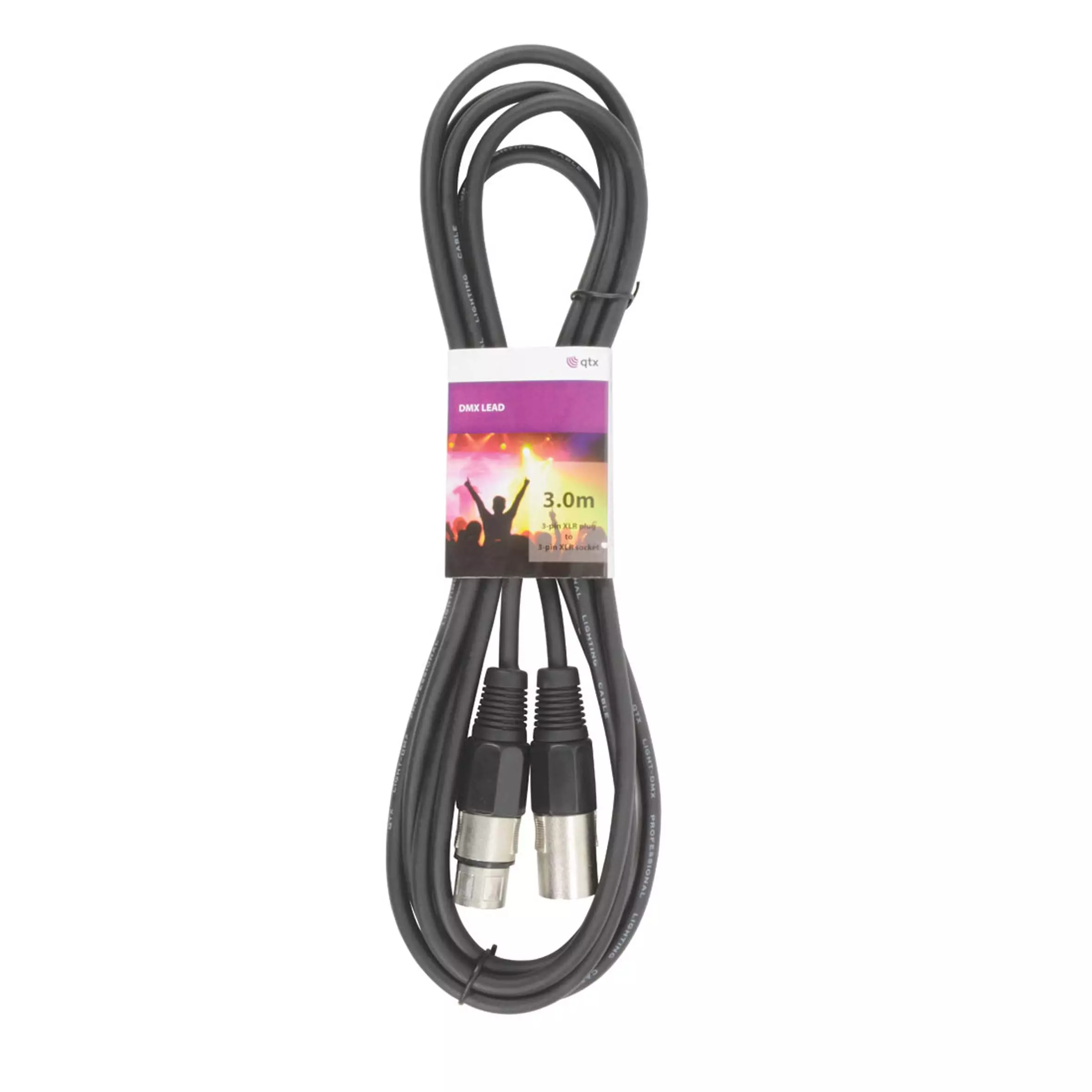 Highly quality flexible shielded 3-pin XLR plug to 3-pin XLR socket DMX lighting leads for connecting lighting fixtures together on master and slave or in a DMX chain.