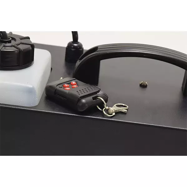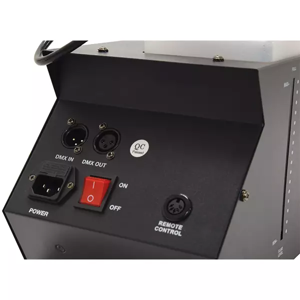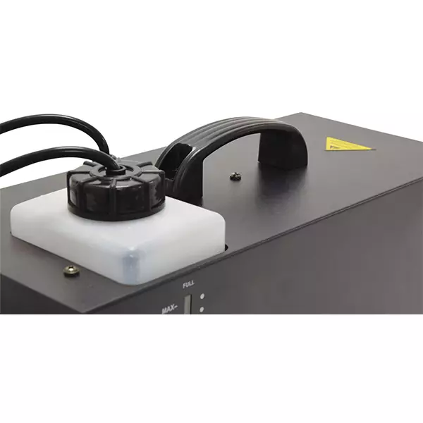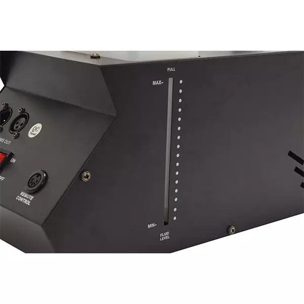 The HZ-800 is a high efficiency 800W haze machine capable of producing 12,000 cu.ft per minute of haze to rapidly fill venues. The volume and speed of fill can be easily controlled using the included wired controller with LCD panel or keyfob-style RF wireless remote. For automated operation a 2 channel DMX connection is also available. The fluid bottle can be removed for easy refilling and there is a slot window to indicate the current fluid level.
