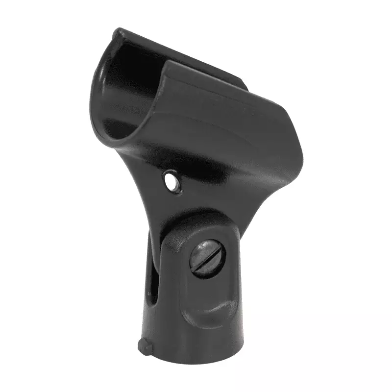 A holder to accommodate microphones of a diameter between 26 – 30mm, with adjustable tilt and 5/8″ thread at the base.