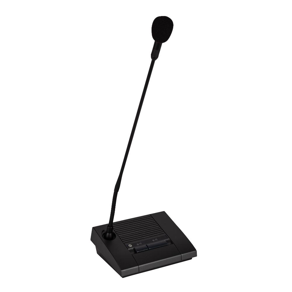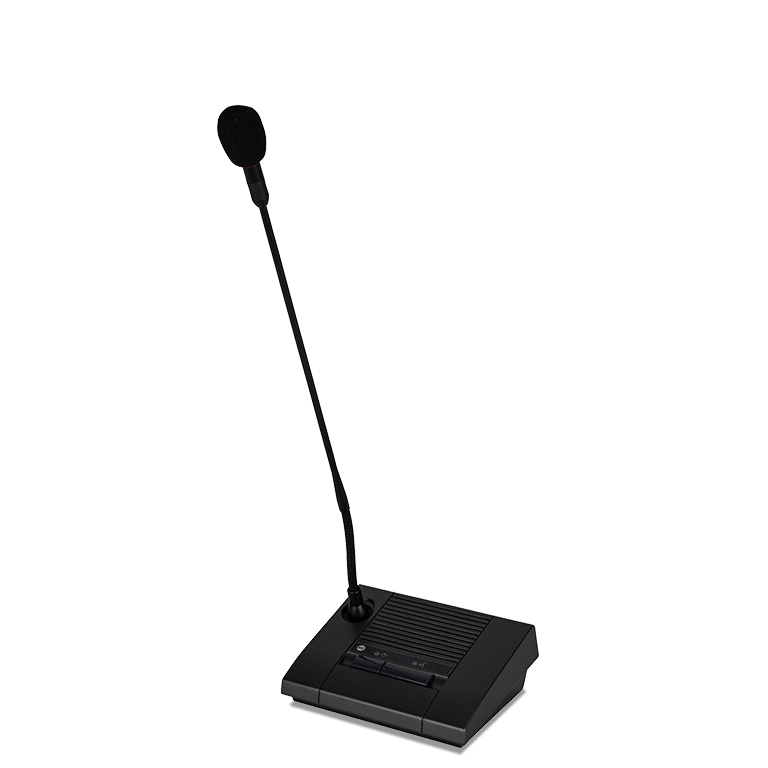 The desk-top chairman microphone console MMS 3405P features two buttons: a latched button to enable the microphone in mixed mode with other active MMS 3404D delegate microphone consoles, and a momentary push button to get the microphone working in priority mode on delegate ones, that stay off till the button has been is released. This function allows the chairman to take the absolute control of the speech. Each button is completed with a LED indicator, lit when pressed. Furthermore the microphone capsule has an LED ring that is ON when the microphone is active. The 46 cm gooseneck microphone mounted on the console has a cardioid pattern, while the miniature high quality transducer assures a good sound reinforcement in small size rooms without needing an additional sound reinforcement system. Two or more MMS 3405P can be cascaded by keeping cascaded priority precedence, over than preserving mixed speech option facility. MMS 3405P is wired directly to the dedicate input of the MMU 3100 unit by means of CAT 5FTP cable provided.