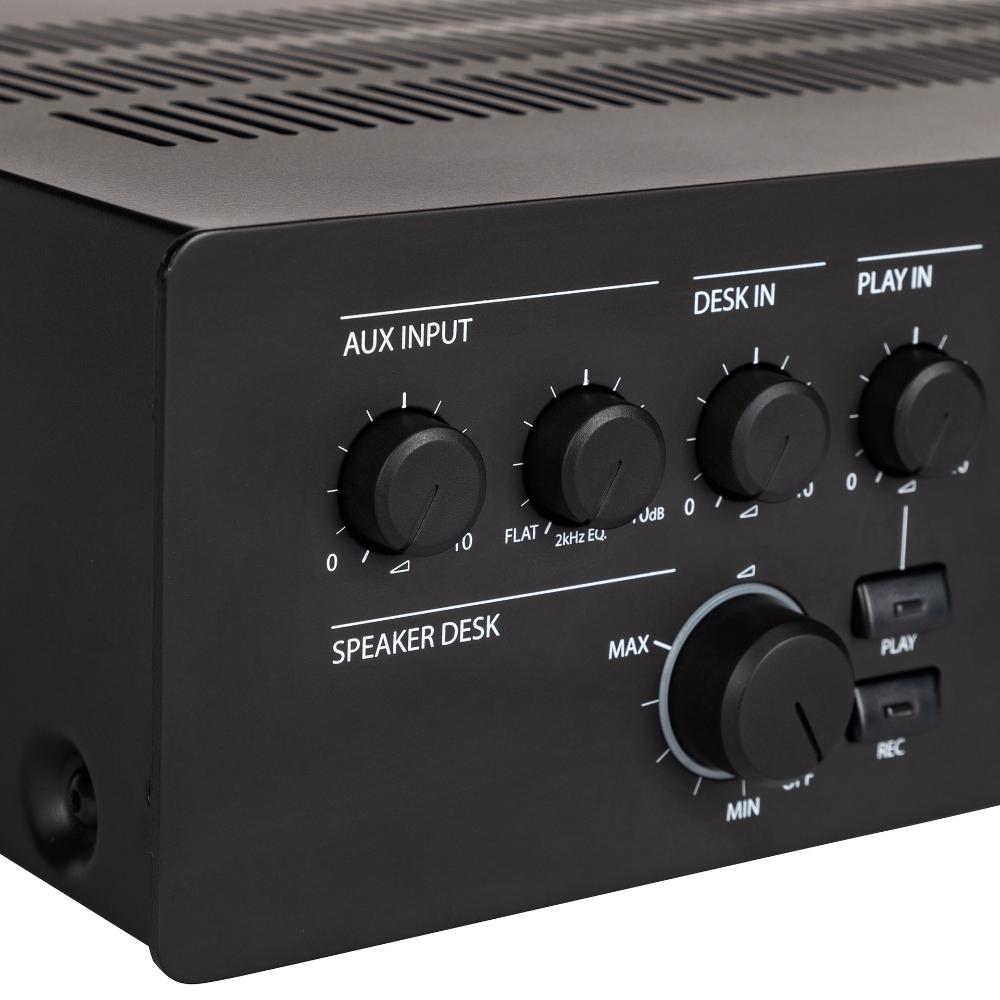 - Built-in 80W power amplifier output with volume control for additional constant voltage sound reinforcement speakers