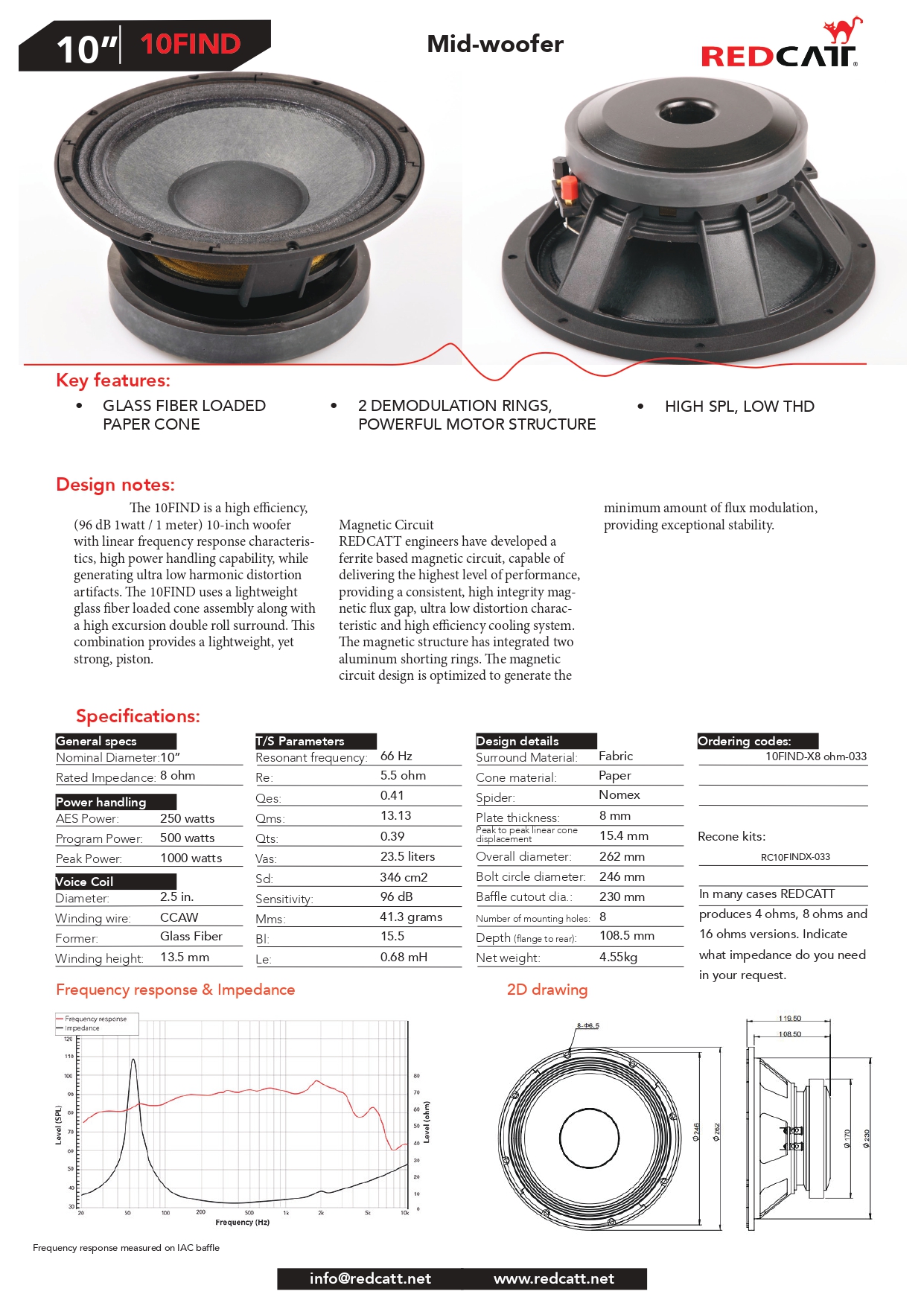 (Based on Redcatt FIND-series 10-inch drivers — exact values adjustable once you provide the label photo)