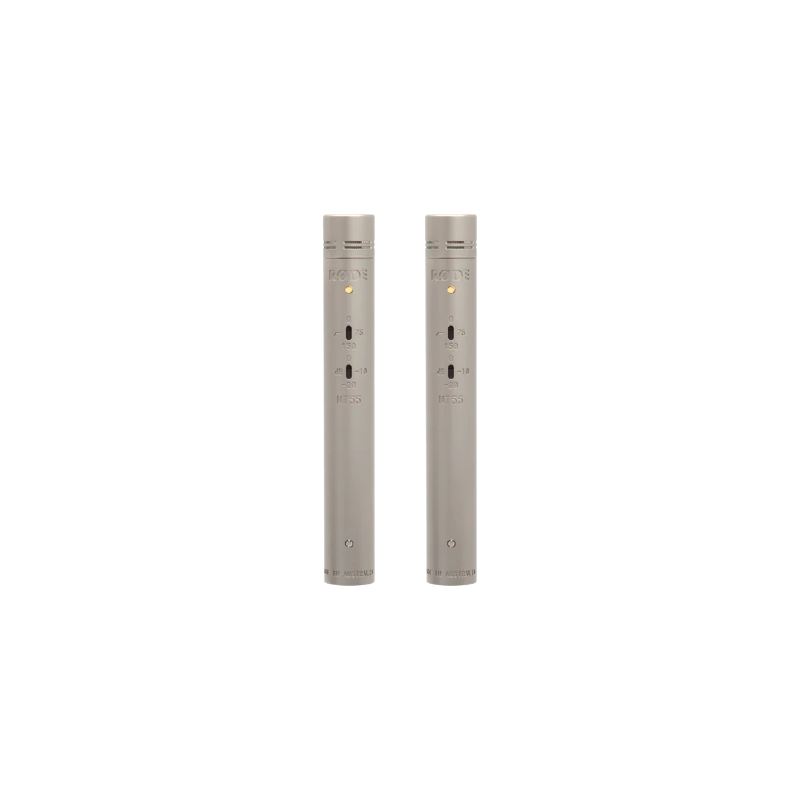 The RODE NT55-MP is a matched stereo pair of NT55 small-diaphragm condenser microphones, designed for professional studio, stage, and broadcast use. Each mic features a precisely matched ½″ gold-sputtered capsule, offering exceptional clarity, low noise, and high SPL handling. With its switchable high-pass filters, pad settings, and interchangeable capsules, the NT55-MP provides outstanding versatility for stereo recording of instruments, ensembles, choirs, and ambient sound.