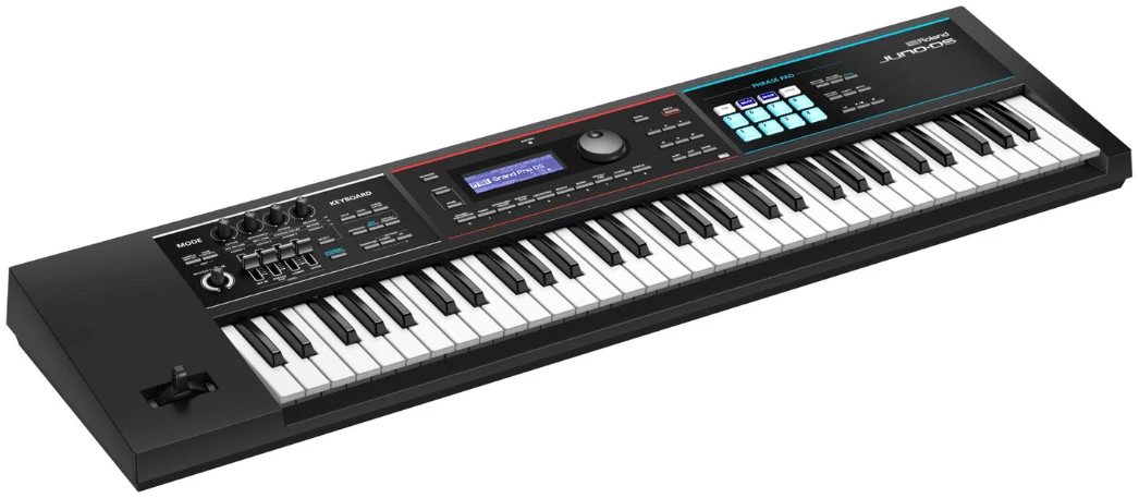 The Roland JUNO-DS61 is a modern, performance-ready synthesizer that builds on the legacy of the iconic JUNO series. It combines versatility, portability, and hands-on control for stage performers and producers alike. With over 1,000 professional sounds, a phrase sampler, pattern sequencer, and mic input with dedicated vocal effects, the JUNO-DS61 is designed to handle any musical style — from pop and EDM to worship and live band use.