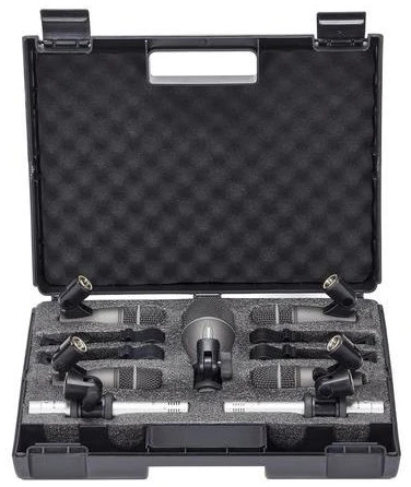 The DK707 is a full-range microphone package for professional drummers. It includes one Q71 Kick Drum Microphone, four Q72 Instrument Microphones and two C02 Pencil Condenser Microphones. Featuring high SPL handling, the Q71 is optimized to capture the full essence of your bass drum. With a specialized frequency response, the Q72s help reproduce the natural tone and attack of your snare drums and toms. Lastly, the C02s are perfect for overhead and ambient miking applications.