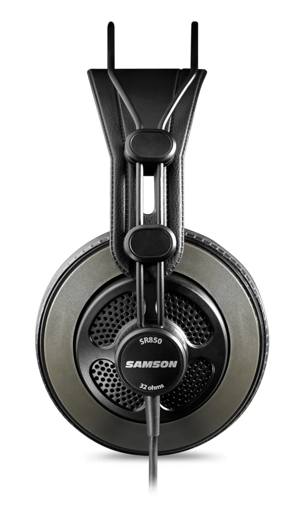The SR850s come equipped with a 1/8” (3.5 mm) connector and include a gold-plated adapter to 1/4” (6.3 mm), making them compatible with a wide range of audio equipment. The 8.25-foot (2.5m) long cable provides ample length for movement while you work or enjoy music.In summary, the Samson SR850 Pro Studio Reference Headphones offer professional performance combined with outstanding comfort, making them an excellent choice for anyone serious about sound quality. Whether you’re mixing tracks in the studio or enjoying your favorite album at home, these headphones deliver an immersive listening experience.The Samson SR850 Pro Studio Reference Headphones are an exceptional choice for musicians, sound engineers, and music enthusiasts seeking a high-quality listening experience. Designed with a semi-open configuration, these headphones enhance ambient listening, allowing for proper bleed that improves stereo imaging and creates a wider soundstage. This feature is particularly beneficial for professionals who need to monitor mixes accurately.