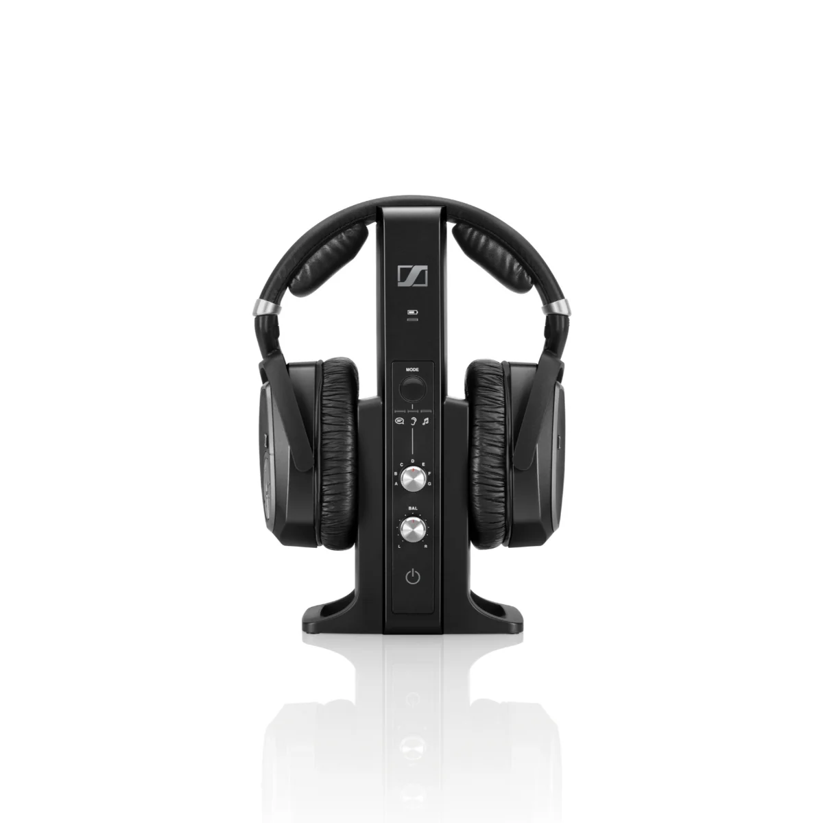 Giving you clear signal transmission with low latency, the RS 195 Digital Wireless Headphone System from Sennheiser is comprised of a pair of HDR 195 headphones and a TR 195 transmitter that also serves as a docking and charging station for the headphones. Hearing boost presets help you boost dialog clarity and suppress noise from your source audio. The system provides up to a 328′ range of operation and features both analog and digital inputs for compatibility with a variety of home entertainment systems. A pair of rechargeable batteries, analog and optical cables, and a power supply are included.