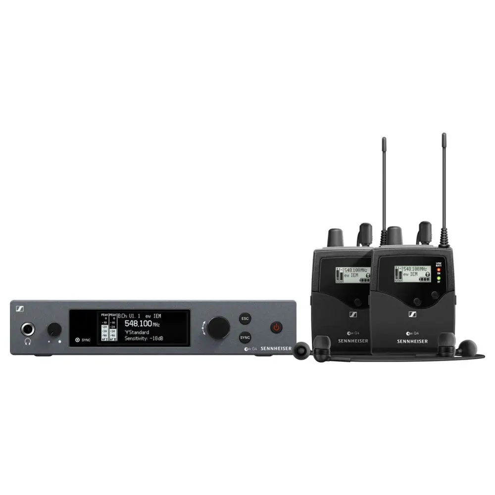 The Sennheiser EW IEM G4-TWIN-A is a professional dual in-ear monitoring system designed for performers, musicians, theatres, broadcast applications, and touring productions requiring two bodypack receivers operating from a single stereo transmitter.