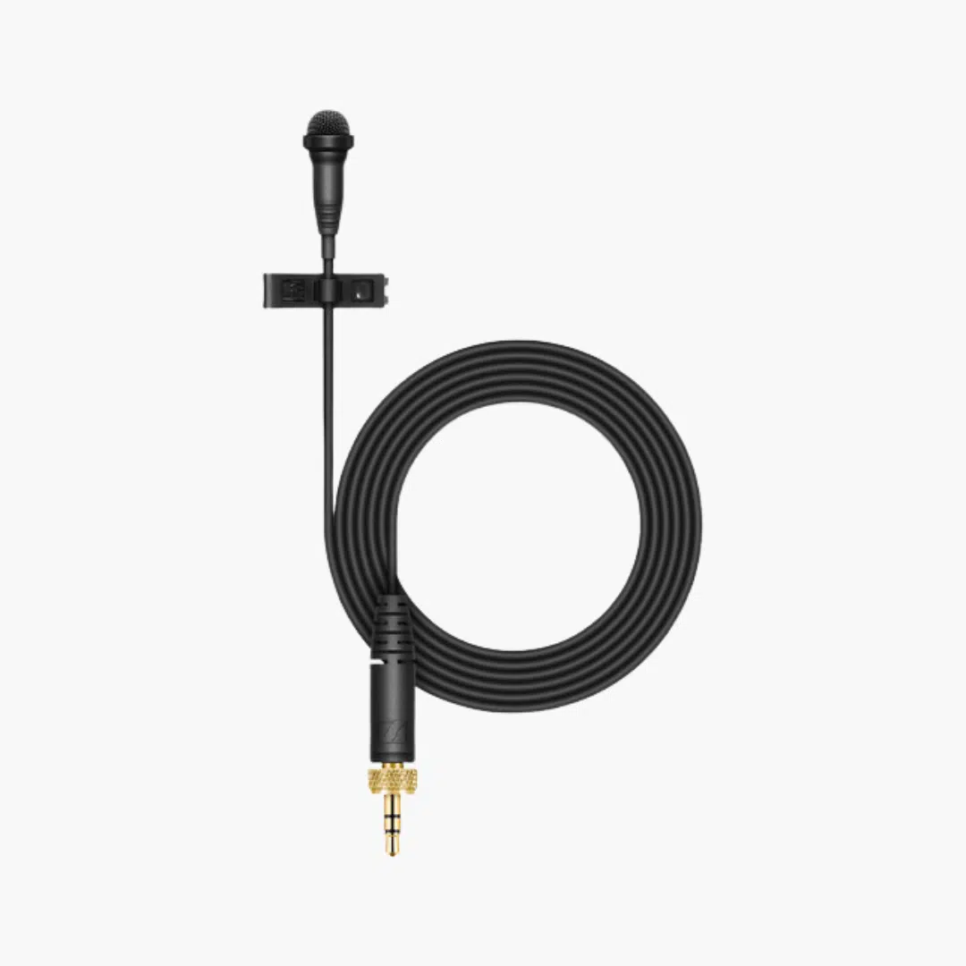 The black Sennheiser ME 2 is a miniature professional lavalier microphone featuring a locking 3.5mm connector for Sennheiser transmitters and engineered for reliable, interference-resistant performance with wireless systems—making it a popular choice for presentations, interviews, broadcast work, and film/video applications.