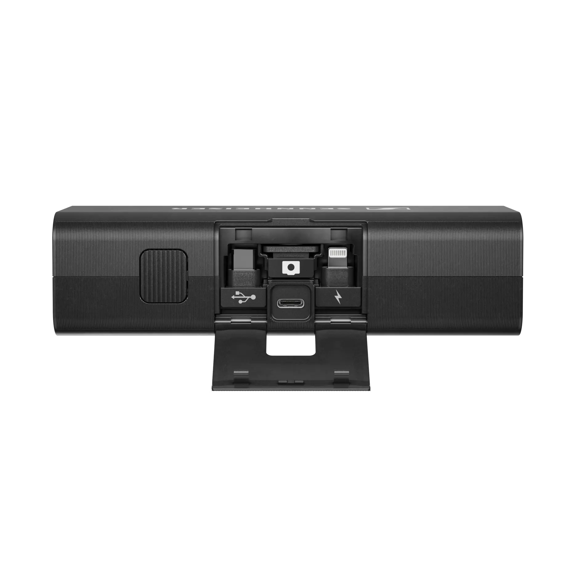 - Lockable external 3.5 mm TRS connector on each microphone for secure connection to optional Sennheiser lavalier mics