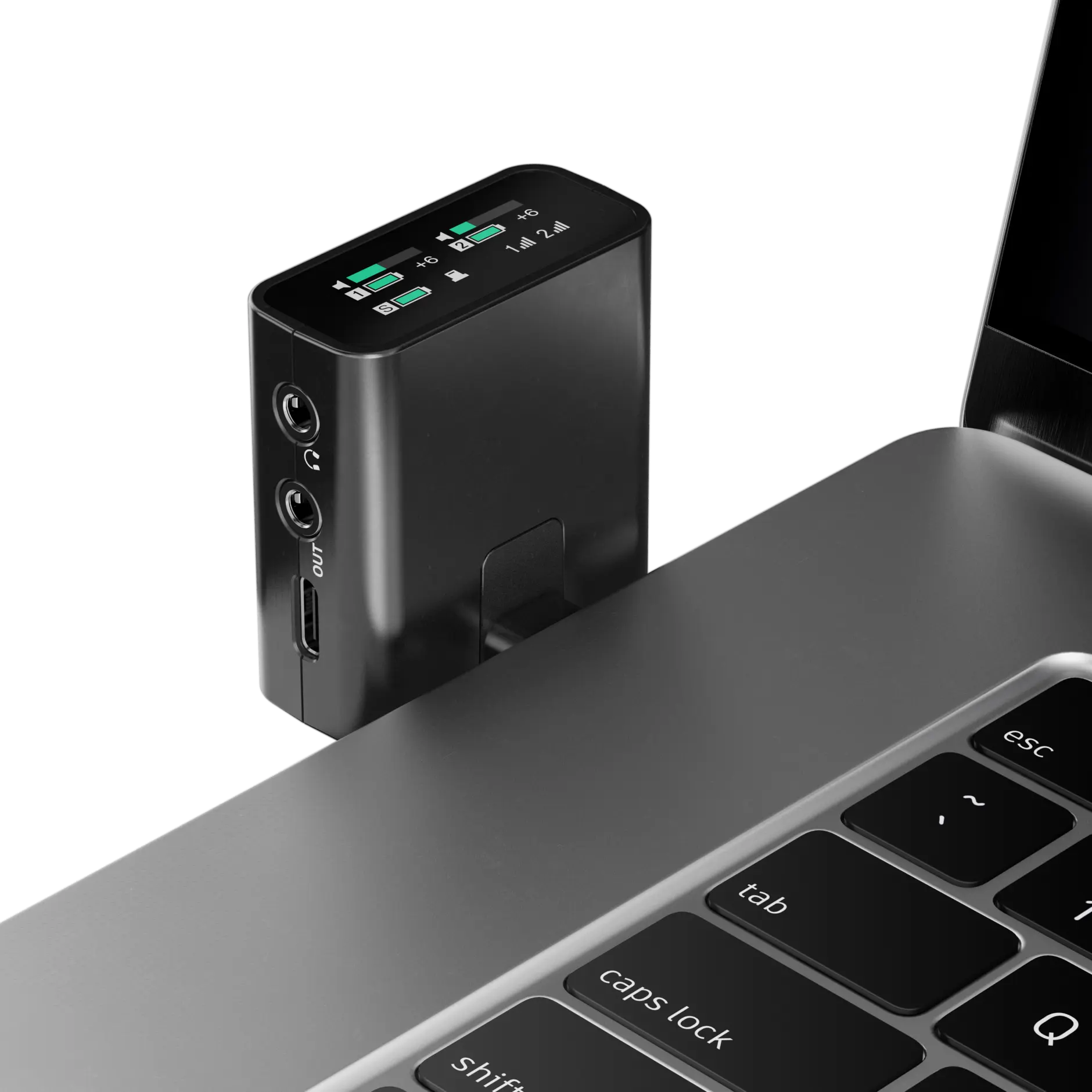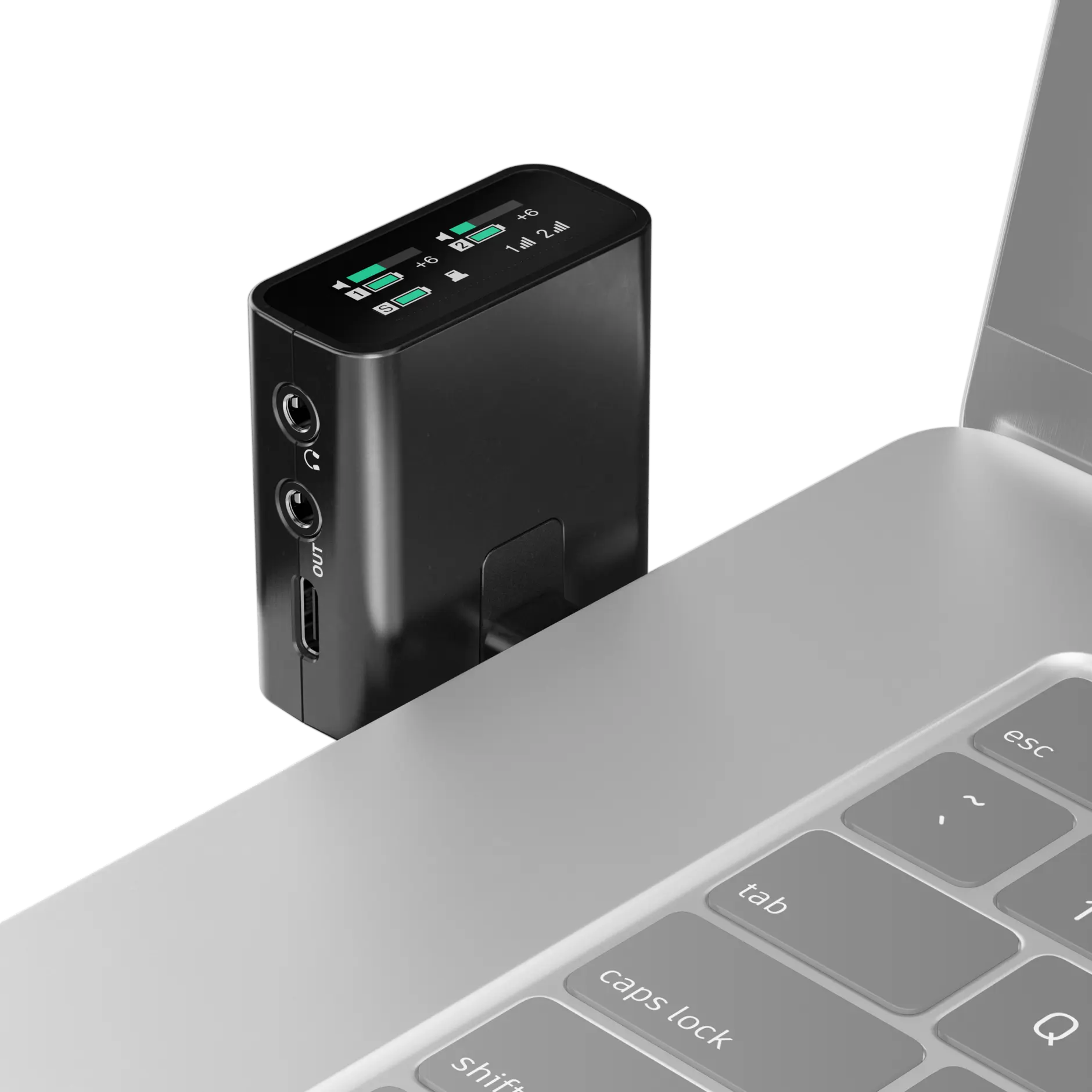 - 2-channel 2.4 GHz system allows for simultaneous recording of two sources