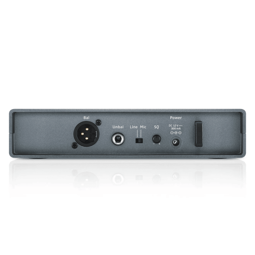 - Compact bodypack transmitter, unobtrusive clip-on microphone