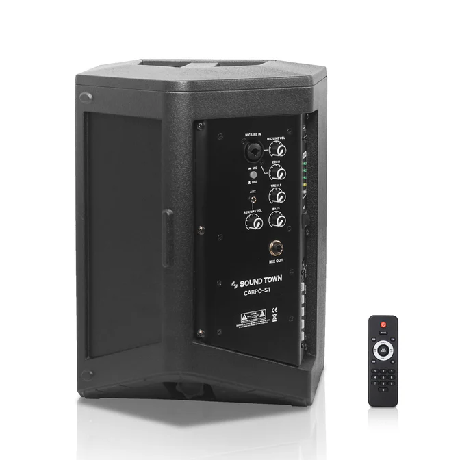 - VERSATILE CONNECTION FOR GREAT FLEXIBILITY AND CONTROL: The CARPO-S1 comes with a 1/4″/XLR combo input (MIC/Line switchable), one 3.5mm Aux in, 1/4″ Mix-out, enabling you to connect your guitar and portable media player directly; built-in MP3 module and supports USB/SD inputs. Reverb, treble, bass and echo controls allows you to optimize your sound along with great-sounding performance.